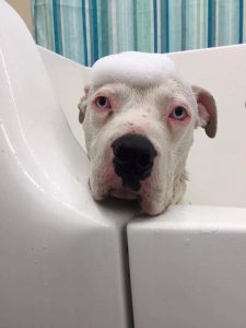 Blue, a one-year-old American Bulldog