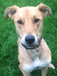 Pete, a three-year-old male lurcher-cross
