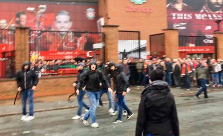 Liverpool responded to the incident, claiming it was ‘shocked and appalled’ by the behaviour of visiting supporters before the game between the sides.