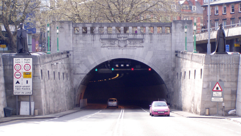 The Queensway Tunnel was shut in both directions on Friday after the articulated vehicle had become jammed in the roof structure on the North John Street bend.