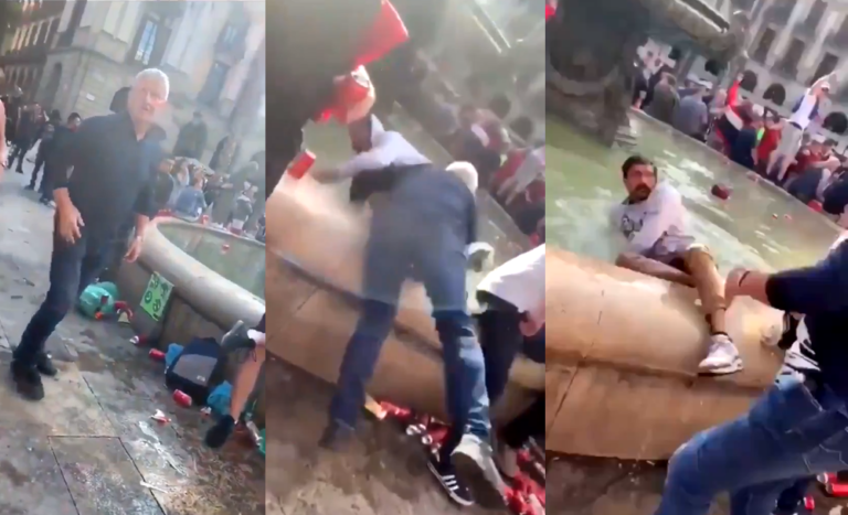Police are investigating after a Liverpool fan threw a local man into a fountain in one of Barcelona’s main squares.