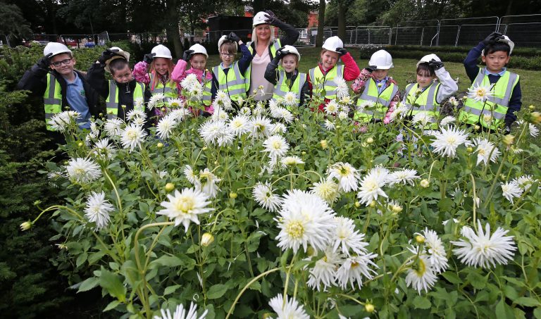 Ten pupils from Four Oaks primary school donned hard hats and picked up tools to help park restorers – construction firm Willmott Dixon – dig over borders and carry out planting on Dahlia Walk.