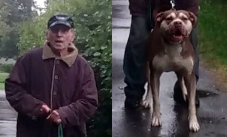 The incident took place on Friday, August 19 at around 9.40am when a woman and her dog were set upon by what is described a red-nosed Pit Bull mix.