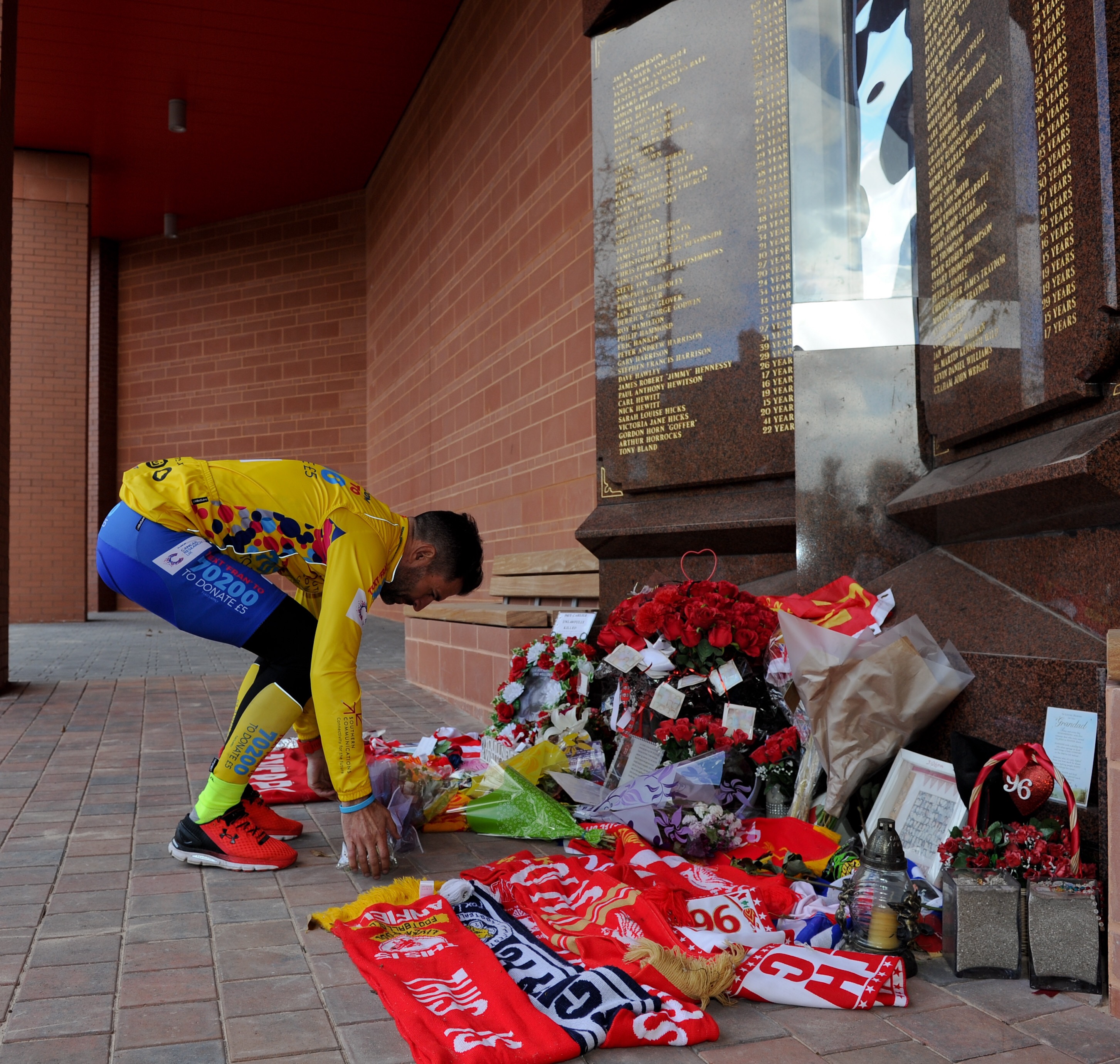 The former Southampton player visited both the Reds’ home and Everton’s Goodison Park as part of a mammoth fundraising challenge for Cancer Research UK – and paused to pay tribute to the 96 football fans who lost their lives at Hillsborough including his cousin, Andrew Sefton, aged 23, who was among those who died.