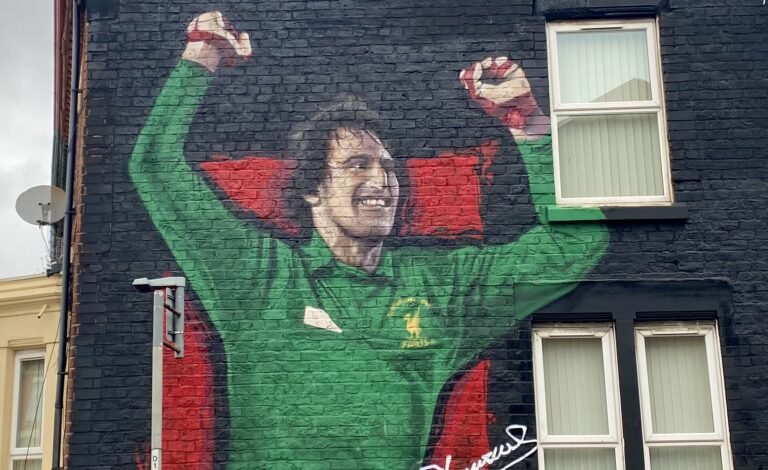 The green jersey is an exact replica of Clemence’s shirt from the 1981 European Cup final, when Bob Paisley’s side edged out Real Madrid in Paris.