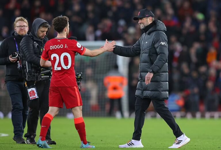 Jota netted a brace to help Klopp’s side see off Leicester City in Thursday’s 2-0 win which took his tally for this season to 17 goals in all competitions.