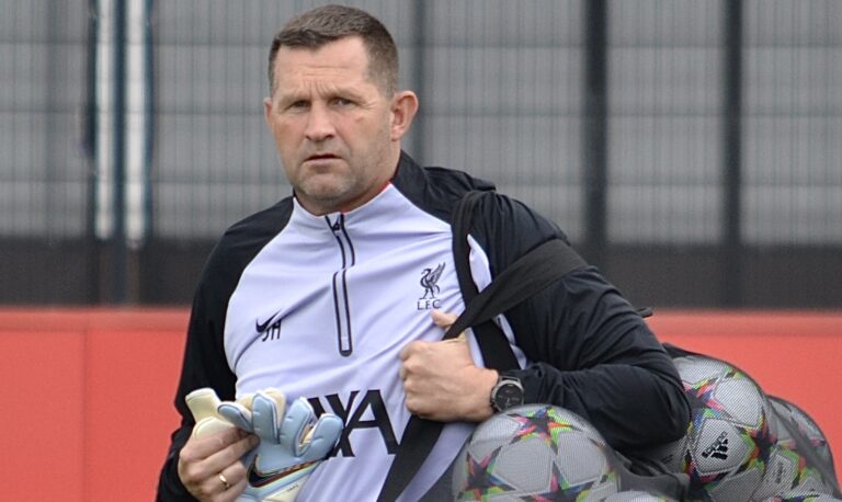 Liverpool’s goalkeeping coach was caught on camera gesturing towards the Newcastle United bench during celebrations for Fabio Carvalho’s late winner.